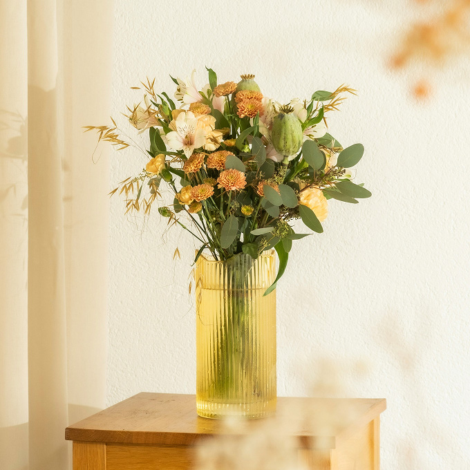 定期装花サービスでは、フローリストがシーンに合わせた季節のお花をお届けし、オフィス内・ショップ内の⽇常に⼼地よい四季を演出します。